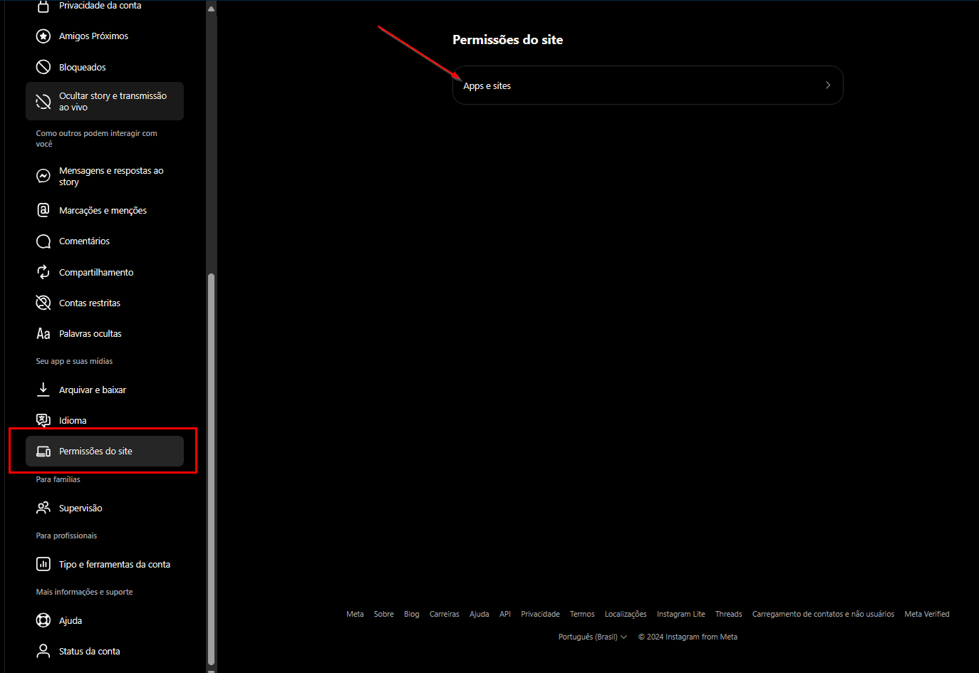 • Acesse “Editar Perfil” e vá para “Aplicativos Autorizados” na coluna esquerda.