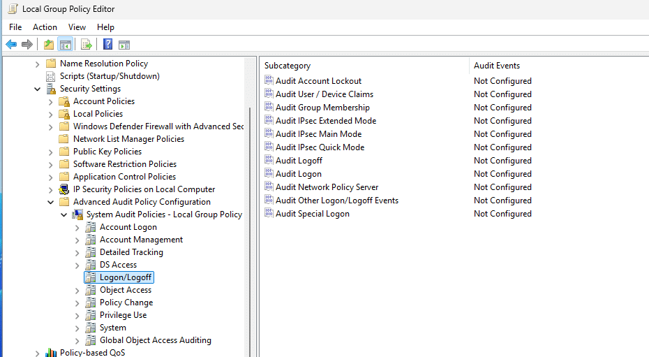 Advanced Audit Policy Configuration > Audit Policies > Logon/Logoff