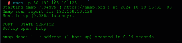Explicação: O parâmetro -p permite especificar uma porta para varredura (neste exemplo, a porta 80, usada pelo HTTP).
