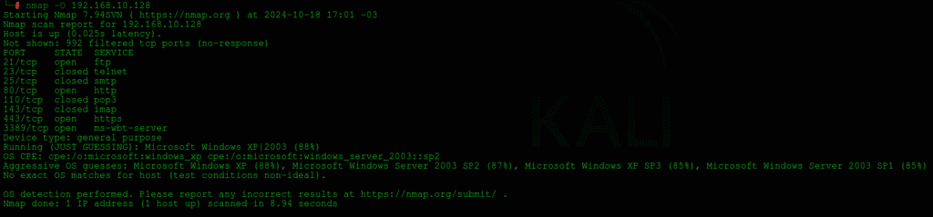 Explicação: O -O tenta identificar o sistema operacional do host.