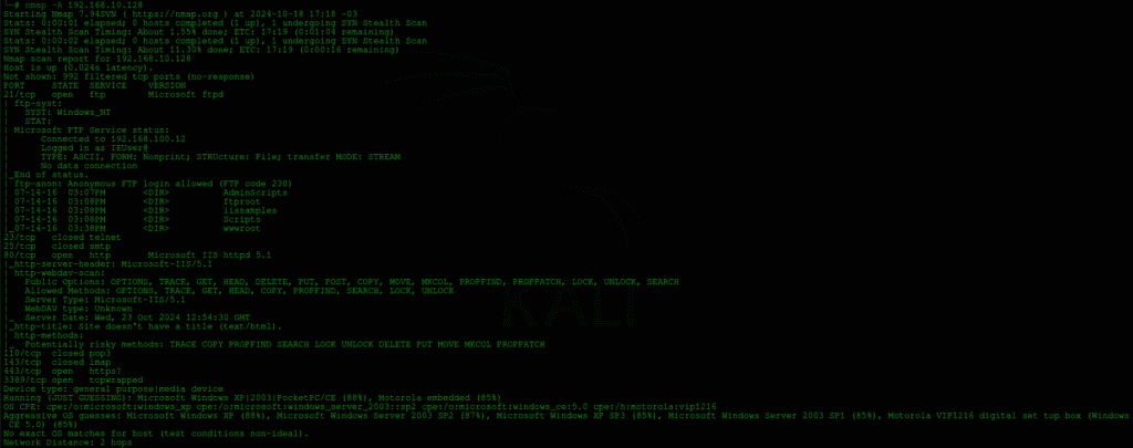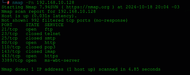 Explicação: O -Pn desativa a fase de ping, essencial quando o firewall do alvo bloqueia pacotes ICMP.