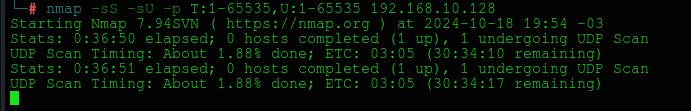 nmap -sS -sU -p T:1-65535,U:1-65535 192.168.10.128
