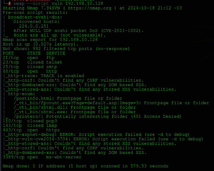 Explicação: Roda uma série de scripts NSE que buscam por vulnerabilidades conhecidas, como Heartbleed e SMBv1.
